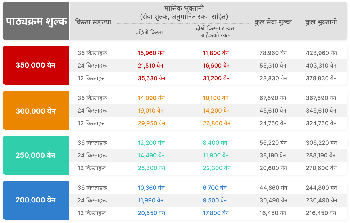 Aवार्षिक १३.२% ब्याज लाग्नेछ। (एकमुष्ट भुक्तानीमा शुल्क लाग्दैन)